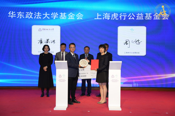 会上,虞潇浩代表学校与上海虎行公益基金会副秘书长周游共同签署《华东政法大学、上海虎行公益基金会专项基金捐赠协议》。肖凯、杜涛、国际法学院党委书记曹都国、我校国际调解研究中心常务副主任倪静见证。