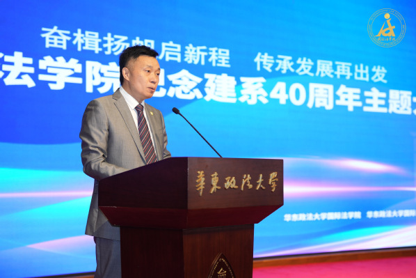 黄进代表中国国际法学会、中国国际私法研究会向国际法师生和广大校友送上祝福。“华东政法大学具有十分辉煌的国际法学科办学传统,汇聚了一代又一代国际法精英才俊,孜孜不倦地在国际法领域教书育人、深耕细作,成为中国国际法学科发展、中国国际法治人才培养的重要基地。”黄进表示,站在四十周年新起点的我校国际法学院,必将能够在培养高素质涉外法治人才,构建中国自主的国际法学知识体系,服务高水平对外开放等方面继往开来,再谱华章。