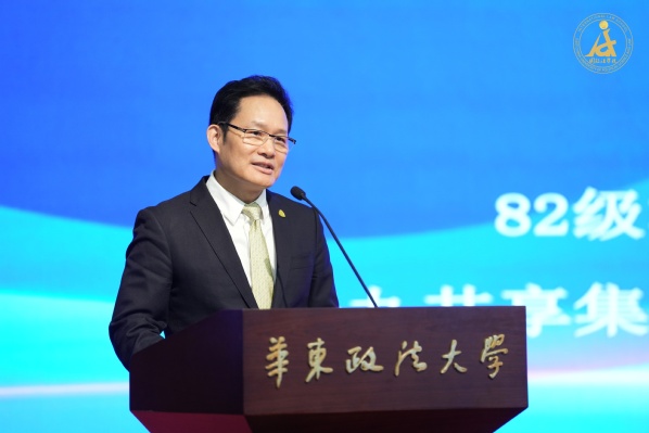 “我们是华政国际法建系的第一届学子,在华政度过的那段日子是我一生中最难忘的时光。”82级校友、国际法校友会副会长,天九共享集团共同主席、天九企服董事长兼CEO戈峻先生在发言中表示,过去十多年来,我因为戈峻英才奖以校友的身份几乎每年都会回到母校,继续领受母校、母院给我的滋养,但今天我又多了一个身份——国际法校友会的副会长,北京校友分会筹建的代表。校友会是传承,也是未来,我们会传承华政人“笃行致知、明德崇法”的精神,用胸怀家国、放眼世界的格局,去支持每一位校友的未来,让校友们能够走得更远。