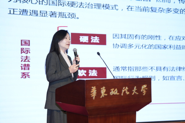 李伟芳讨论了国际软法在全球治理中的作用和意义。在厘清国际软法的来源和法律属性等基础内容后,她以《世界人权宣言》《里约宣言》以及联合国大会关于文化遗产保护的决议为例,说明国际软法不仅能补充硬法协商周期长的不足,还能推动国际争端解决的多元化。她强调,软硬法结合应是国际法的特点,国际软法同时也会影响国内法,并呼吁重视软法在当代国际法实践中的功能与价值。
