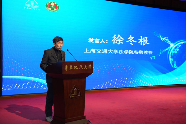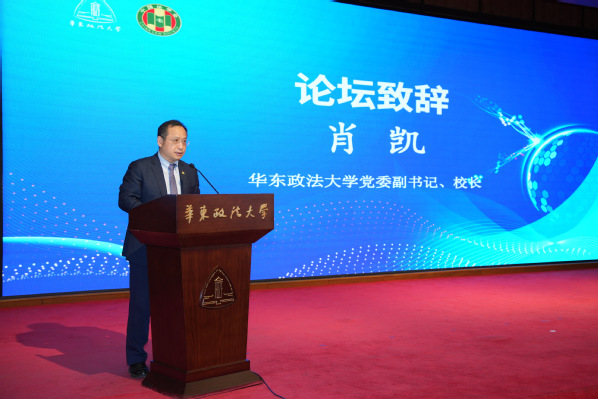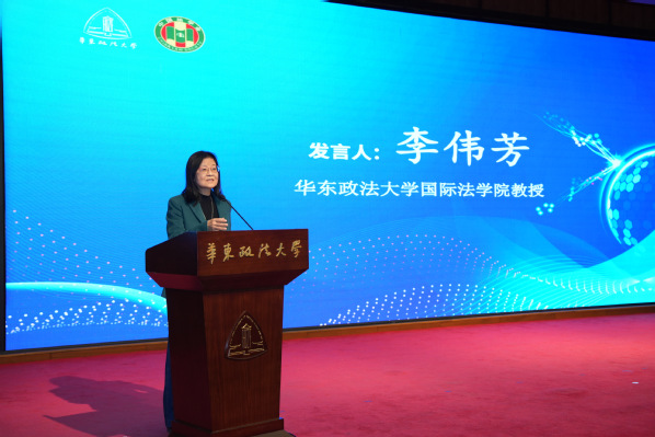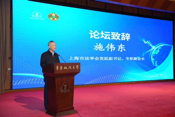 施伟东代表上海市法学会祝贺华东政法大学国际法学院建系40周年,并肯定学院在国际法和涉外法治领域开展教学、科研、人才培养、社会服务等方面工作所取得的突出成果,已成国内国际法教研重镇。他强调,在当前复杂多变的国际形势下,更应维护以联合国为核心的多边体系,坚持国际法的普遍原则和基本价值。他同时介绍了上海市法学会在涉外法治领域开展智库研究和人才培育工作的情况,并期待上海市法学会与华东政法大学、国际法学院进一步深化交流合作,共育高素质涉外法治人才。