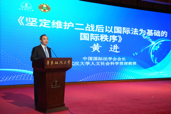 黄进作“坚定维护二战后以国际法为基础的国际秩序”主旨发言。他指出,在联合国成立80周年、中国人民抗日战争胜利暨世界反法西斯战争胜利80周年的当下,维护以联合国为核心、以国际法为基础的国际秩序至关重要——第二次世界大战后的国际秩序表现出了“以国际法为基础”“具有多边主义本质”“呈体系化与制度化趋势”的三大特征,但也存在国家间力量对比悬殊、诸多领域的国际合作不充足等历史局限。他从防止历史悲剧重演、应对全球性挑战、促进国际关系民主化、构建“人类命运共同体”等四个方面出发,强调了应以捍卫联合国权威、践行真正多边主义、反对双重标准、促进文明对话、推动共同发展等五条路径,应对当前国际秩序面临的挑战。