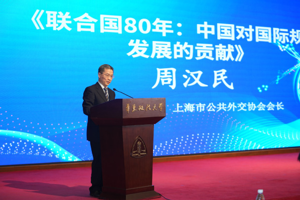 周汉民围绕“联合国80年:中国对国际规则发展的贡献”作主旨发言,指出新中国是与联合国共同成长的——从签署《联合国宪章》到提出“和平共处五项原则”,再到参与全球事务,中国逐步从国际秩序的参与者发展成为建设者。他从“和平安全”“经济发展”“环境治理”“文明互鉴”“制度治理”等五个方面,全面阐释了中国对国际规则发展的核心贡献,并特别强调了“四大全球倡议”的重要意义。他还提出了联合国未来改革的中国方案,即坚持多边主义、提升治理体系包容性、以共同发展为规则更新根基,进而彰显中国在构建国际秩序中的作用。