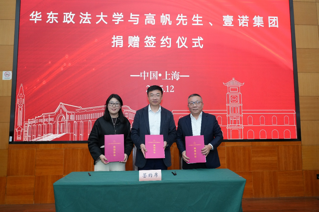 12月2日,我校与高帆先生、壹诺集团捐赠签约仪式在长宁校区举行。易明医药创始人高帆先生,壹诺集团创始人兼总裁、经济法学院校友蒋冲女士,壹诺集团总裁特别助理刘娜民出席。我校党委副书记、校长肖凯,党委副书记韩强、科研处处长陆宇峰,经济法学院院长钱玉林、党委书记朱敏、原党委副书记黄莉等参加仪式,共同见证校企携手的重要时刻。