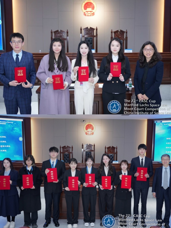 我校国际法学院始终坚持“面向世界,面向未来,面向现代化”的办学方针,秉承“追求卓越,追求完美”的开拓创新精神,致力于培养高层次、高水平的国际法专业人才。通过选派代表队参加本届国际空间法模拟法庭竞赛,国际法学院在向学生普及国际空间法专业知识,提升学生学习、研究国际空间法的兴趣和热情,以及提高学生的国际法综合应用能力和英语口语、写作水平等方面取得了显著的成效。今后,国际法学院还将继续关注和参与该赛事,并将以此作为契机,为提升我国航天软实力、推动我国航天强国建设作出积极贡献。
