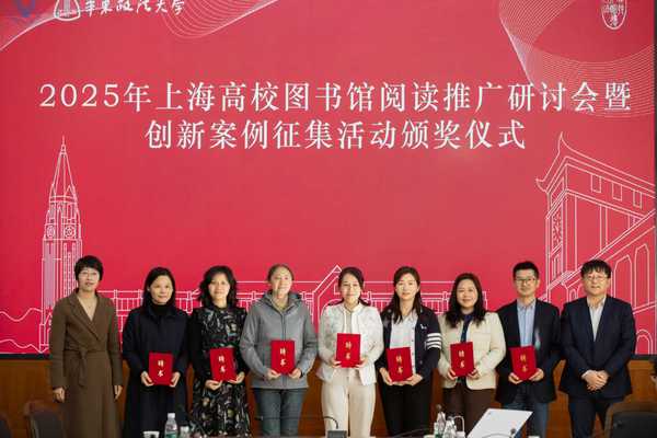 近日,2025年上海高校图书馆阅读推广研讨会暨案例征集活动在我校落幕。本次活动由上海市高等学校图书情报工作委员会、上海市图书馆学会主办,上海市高校图工委阅读推广文化交流工作组、上图学会阅读推广委员会大学生阅读推广分委会和我校图书馆承办。活动以“数字人文·阅见未来”为主题,自10月下旬启动以来,在短短一个月的组织发动时间内,吸引了上海高校图书馆界的众多专家学者及从业人员参与,共同探讨数智时代高校阅读推广的创新路径与发展方向。