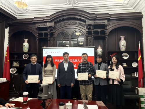 12月12日下午,学校无党派人士认定仪式在长宁校区四号楼举行。校党委副书记韩强、相关二级党组织书记、校知联会会员代表等出席活动。活动由党委统战部副部长周莉主持。