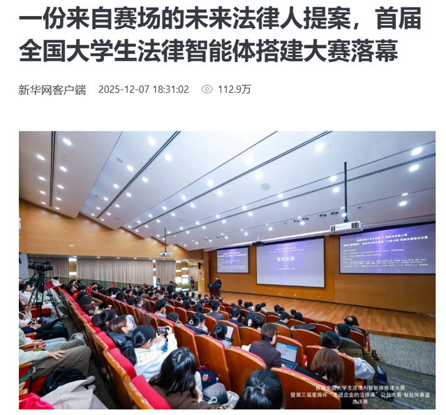 星瀚杯“走进企业的法律课”公益大赛系列赛事在历经三届的积累与迭代中,紧跟前沿,不断升级,今年除“法律课赛道”外,更创造性地增设了“AI智能体搭建”赛道。回应了法律科技融合的行业浪潮,也将赛事的边界从法律知识应用拓展至法律科技创新。赛事首创“法律+技术”的跨学科组队模式,有力推动了知识交叉与能力融合。腾讯云等顶尖科技企业为参赛者提供了企业级的开发平台、海量资源与实战指导,将学习场域从课堂延伸至真实的技术研发环境。更重要的是,大赛以解决企业法务的实际痛点为导向,实现了产教的深度对接。为法律行业的数字化转型提供了可复制的创新样本,为法学教育如何应对AI时代提供了一个生动的切片。赛事产出的不仅是获奖名单,更是一份关于“未来法律人需要如何思考与工作”的鲜活提案。