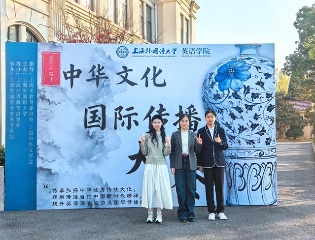 12月19日,由上海市教育委员会、上海市外文学会指导,上海外国语大学主办的第三届上海市大学生中华文化国际传播大赛落幕。经过复赛和决赛的激烈角逐,我校外语学院2023级顾沈玲荣获一等奖,2024级肖如意、2025级钱思宇分别获三等奖。郭一老师担任指导教师。