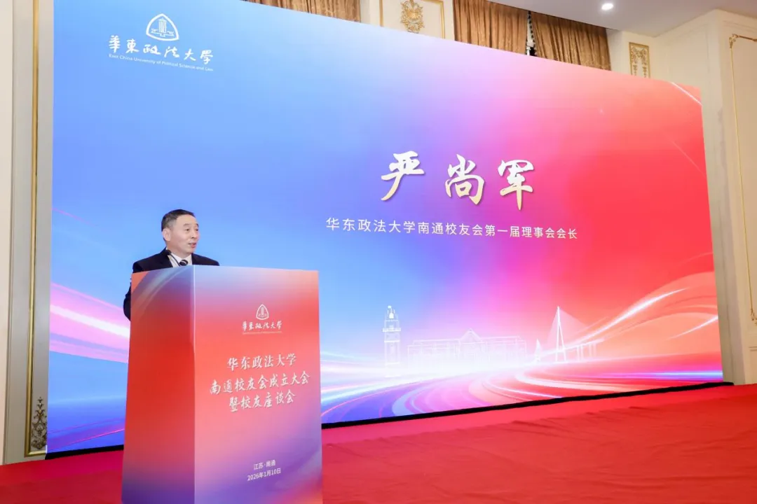 在就职发言中,严尚军以一句“参天之树,必有其根”道出了全体校友的共同心声。他坦言南通校友会起步虽晚,但将发挥“后发优势”,在“弯道实现跨越发展”。他表示,南通校友会的成立为南通华政人构筑了精神家园与合作平台,他将带领理事会切实履行责任,着力服务校友需求、促进校地互动、传承华政精神,努力将校友会建设成为凝聚情感、赋能发展、彰显价值的温暖共同体。他呼吁广大校友积极参与,携手共促校友会蓬勃发展,为母校争光、为南通贡献华政智慧。