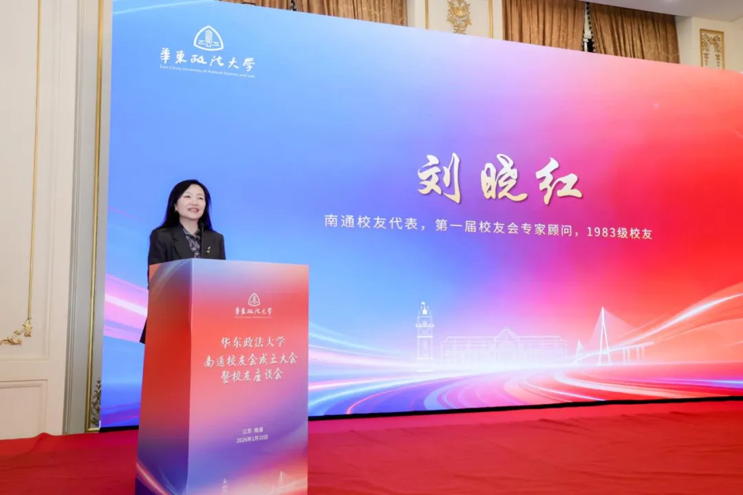 校友代表刘晓红在发言中深情回顾了自己从南通考入华政、在校学习工作33年的经历。她表示,“华政人”是自己最珍视的身份标识,校友会的成立像纽带般重新串联起散落在各领域的南通校友。她期待校友会未来能成为凝聚共识的家园、助力成长的阶梯、反哺母校的桥梁和服务地方法治建设的智库,号召校友们用专业与情怀共同谱写华政人在南通的新篇章。