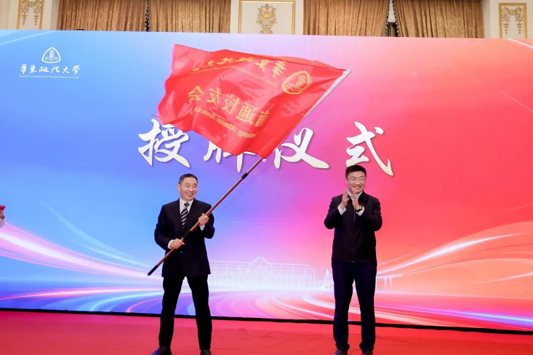 韩强代表学校向首任会长严尚军授予“华东政法大学南通校友会”牌匾、会旗及会长聘书,宣告组织正式启航。曲玉梁、钱玉林分别为副会长、秘书长、理事等颁发聘书。