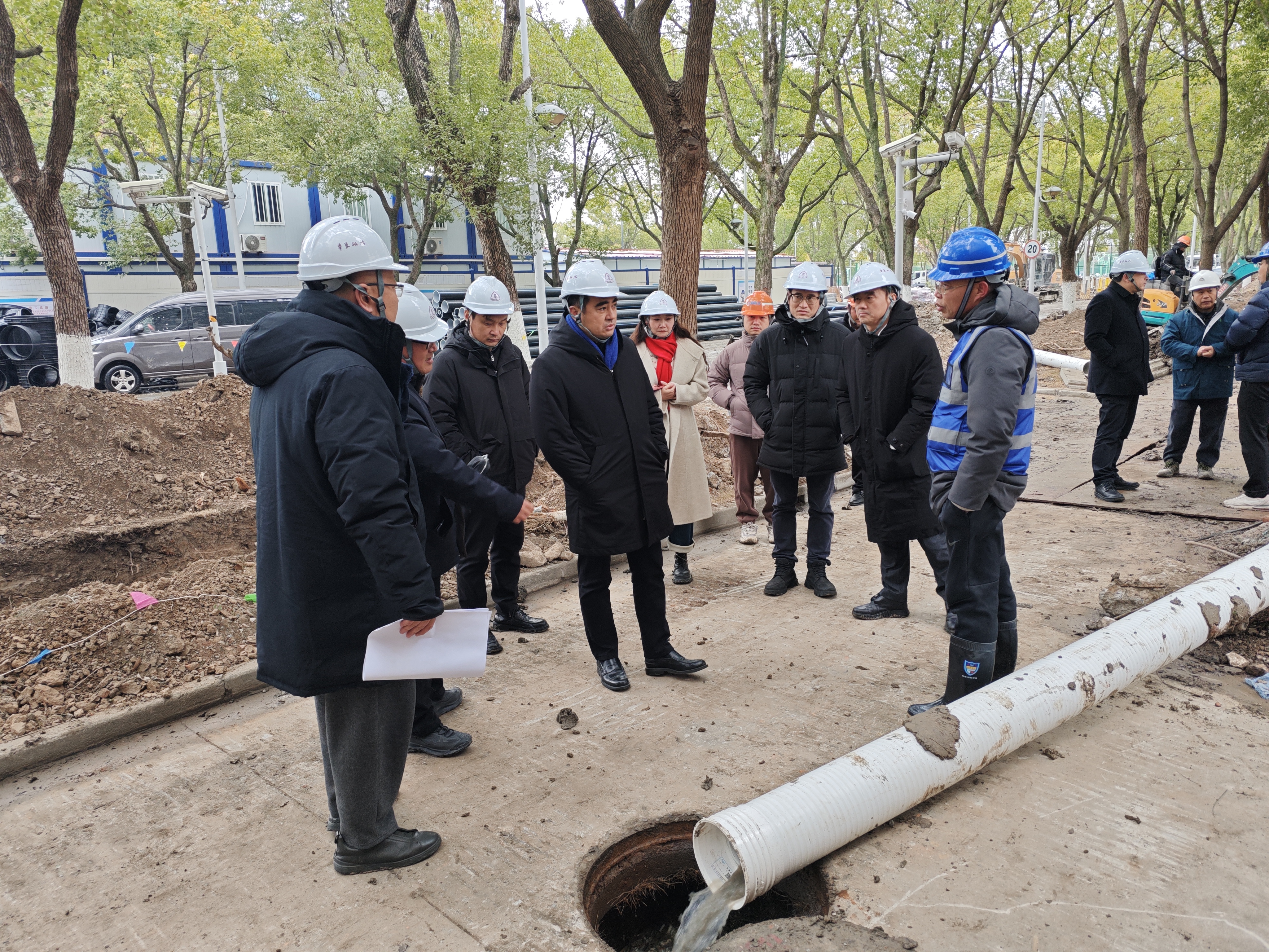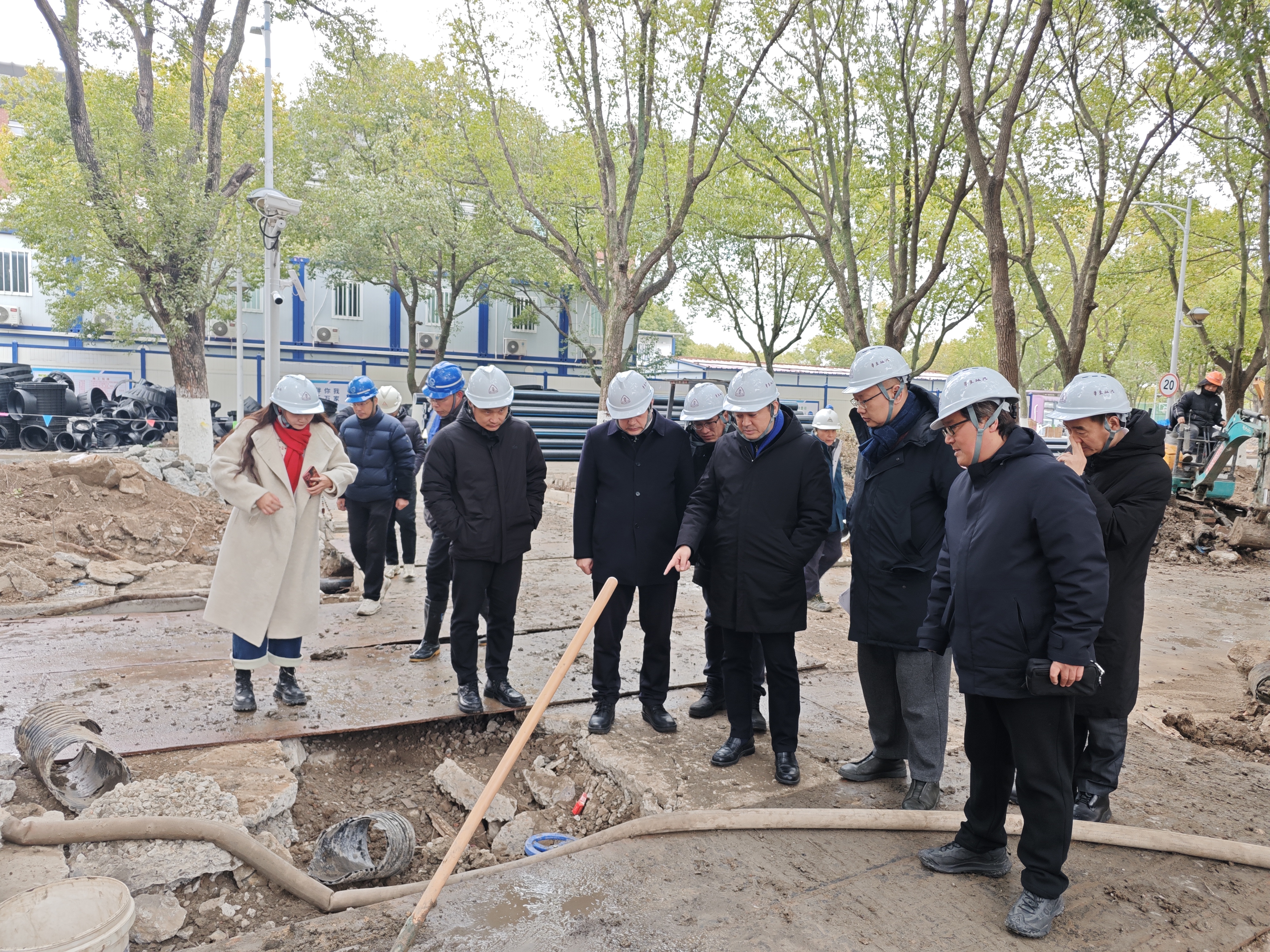 1月20日,校党委书记王宏舟,党委常委、副校长周立志一行,来到松江校区地下管线及道路综合维修工程施工现场,实地调研并检查指导项目建设工作。基建处、学生处和学校办等职能部门领导陪同调研。