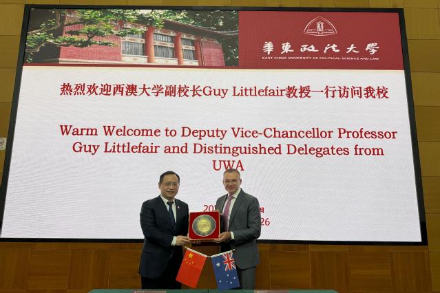 1月30日,西澳大学教育与学生事务副校长Guy Littlefair教授再度到访我校长宁校区。继2025年11月中旬来访后,此次专程来访,旨在推动双方此前共识落地见效,进一步深化务实合作。我校校长肖凯教授、副校长罗培新教授会见来宾,国际交流处处长(国际教育学院院长)伍巧芳教授,国际交流处副处长(国际教育学院副院长)张丽君、李勇等参与接待。