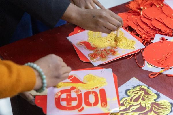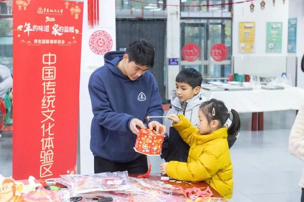 写春联、书福字、剪窗花、做拓印、制宫灯……以“可感、可触、可品”沉浸式设计现场,精心打造年俗文化体验区。案头红宣铺展,墨香氤氲中将“福满人间”的祝愿送给每位华政人。师生们巧手编扎一盏盏玲珑宫灯,渐次成型灯影摇曳中透出浓浓年味。入口处的“新年心愿池” 更成了现场的温情一隅,人们纷纷写下对生活的点点期许让年节的温度在字句间静静流淌。