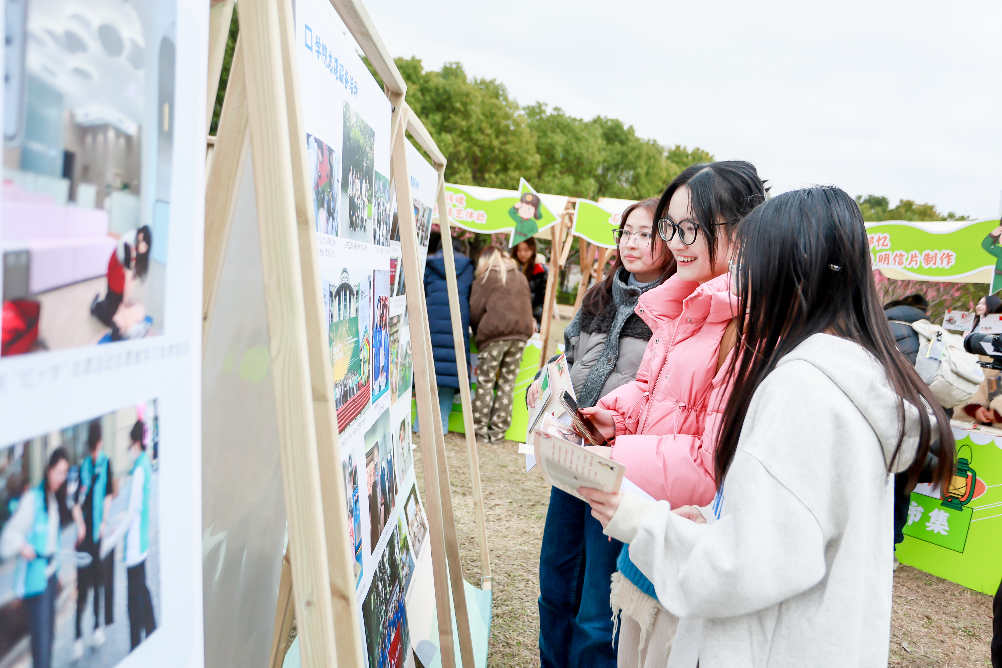3月4日,ECUPL大草坪上的志愿服务展与主题市集人气爆棚。一张张照片定格华政青年奔赴各地的志愿瞬间,一个个故事拼凑出华政人的志愿服务图谱,从专业法律服务到基层支教帮扶,从进博志愿保障到校园便民服务,志愿足迹在此汇聚,让师生们直观感受身边的雷锋精神,不少同学还在展板中找到了自己的志愿身影。“看到展板里有我参加进博会志愿服务的照片,特别有成就感,这是大学期间最珍贵的纪念。”韦亚星同学感慨道。