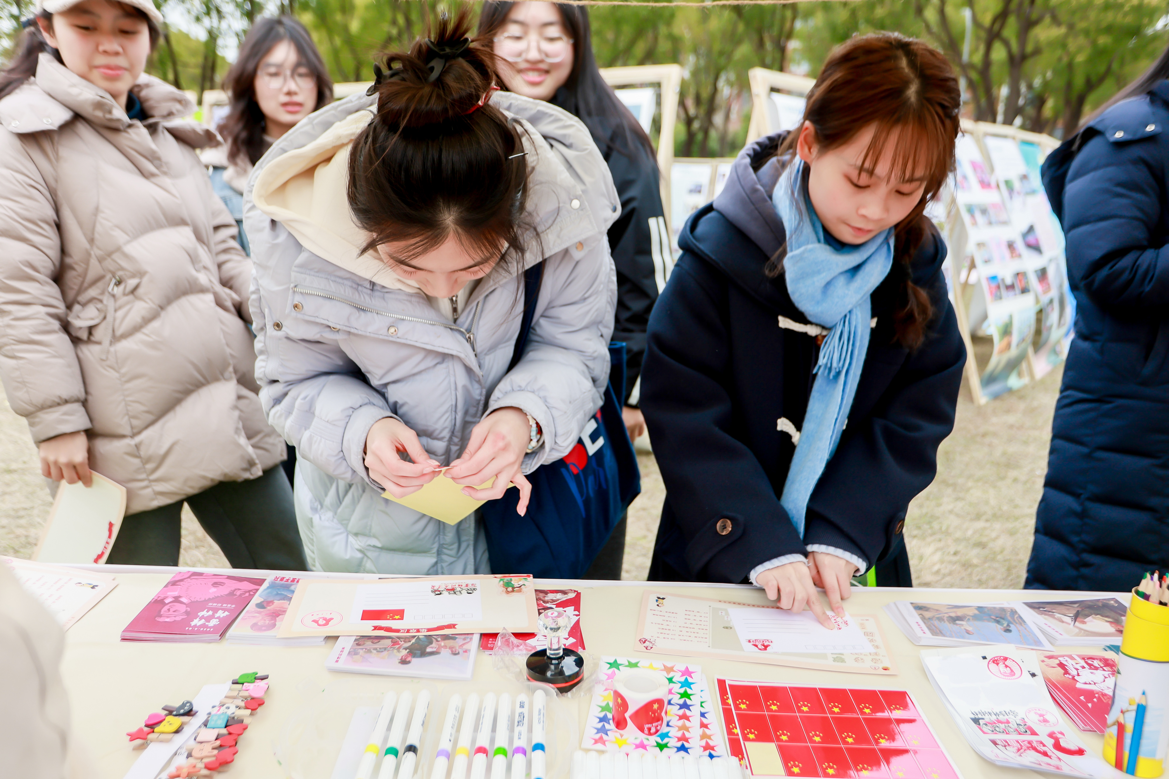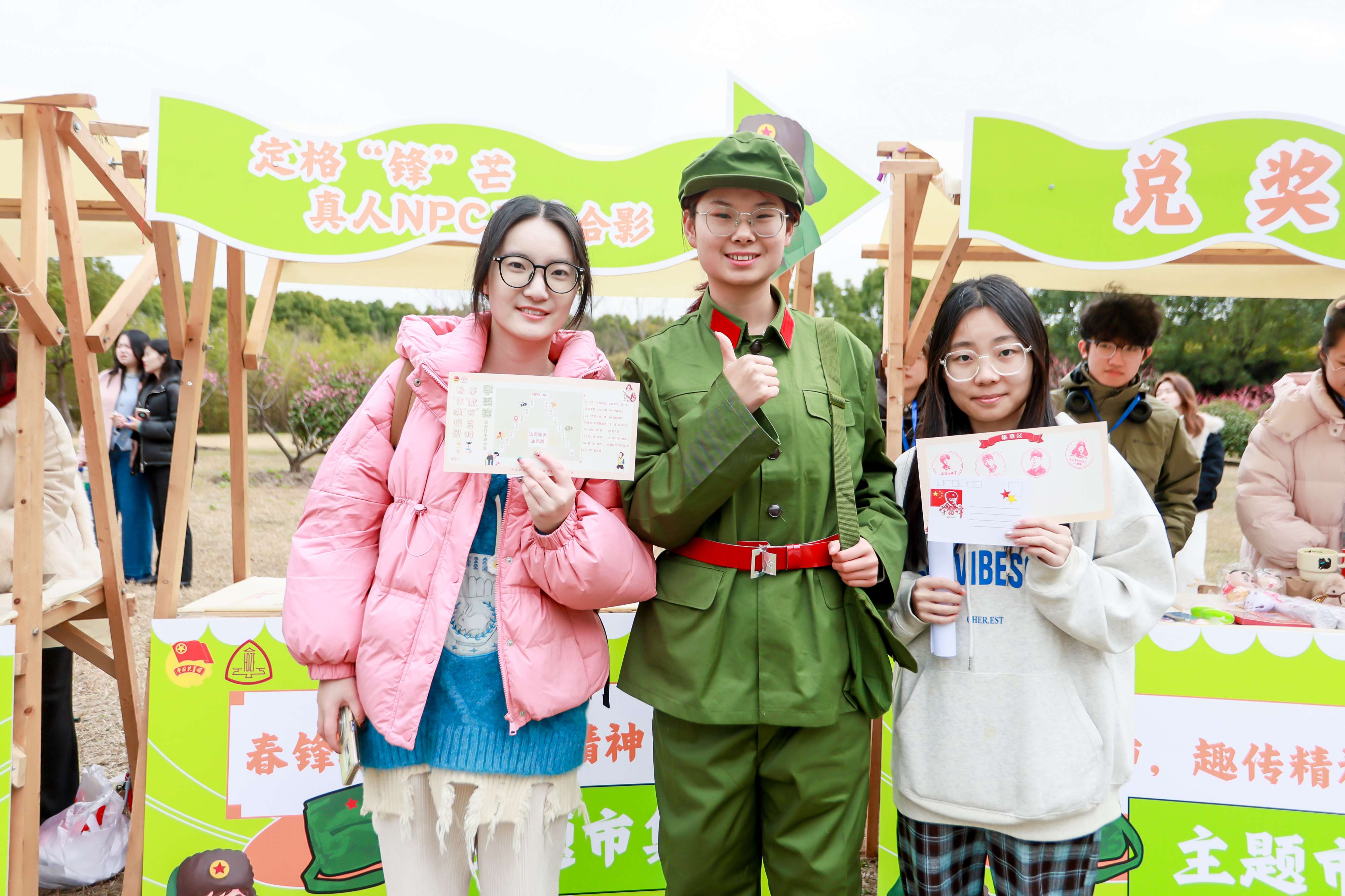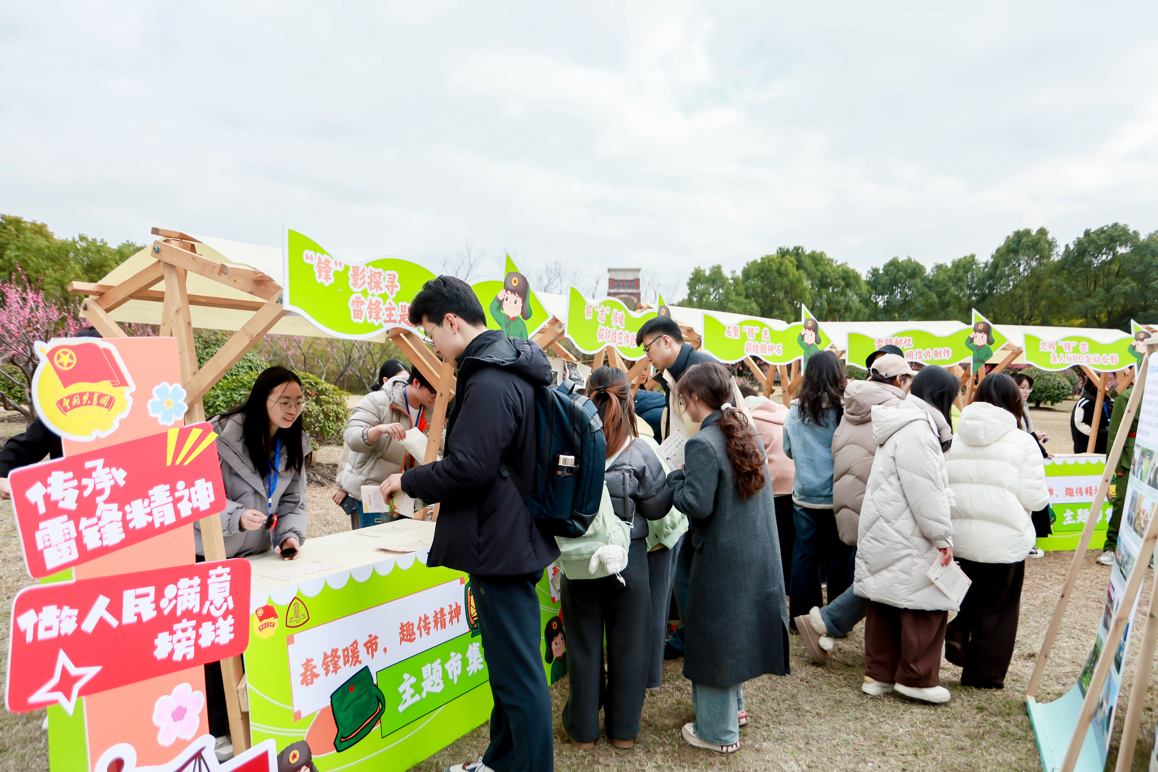 主题市集里,趣味闯关与创意手工轮番上阵,成为师生打卡热门点。知“锋”“明”“志”知识问答、声传薪火歌曲猜名、“锋”趣拍七令互动游戏等闯关环节,让大家在欢声笑语中学习雷锋精神、重温志愿常识;拓“至”传魂传统拓印、石聚“锋”光石绘涂鸦、雷锋邮忆明信片制作等手工体验,将志愿精神融入手工创作,一件件饱含心意的作品,既是对雷锋精神的致敬,也成为独属于春日的公益纪念。