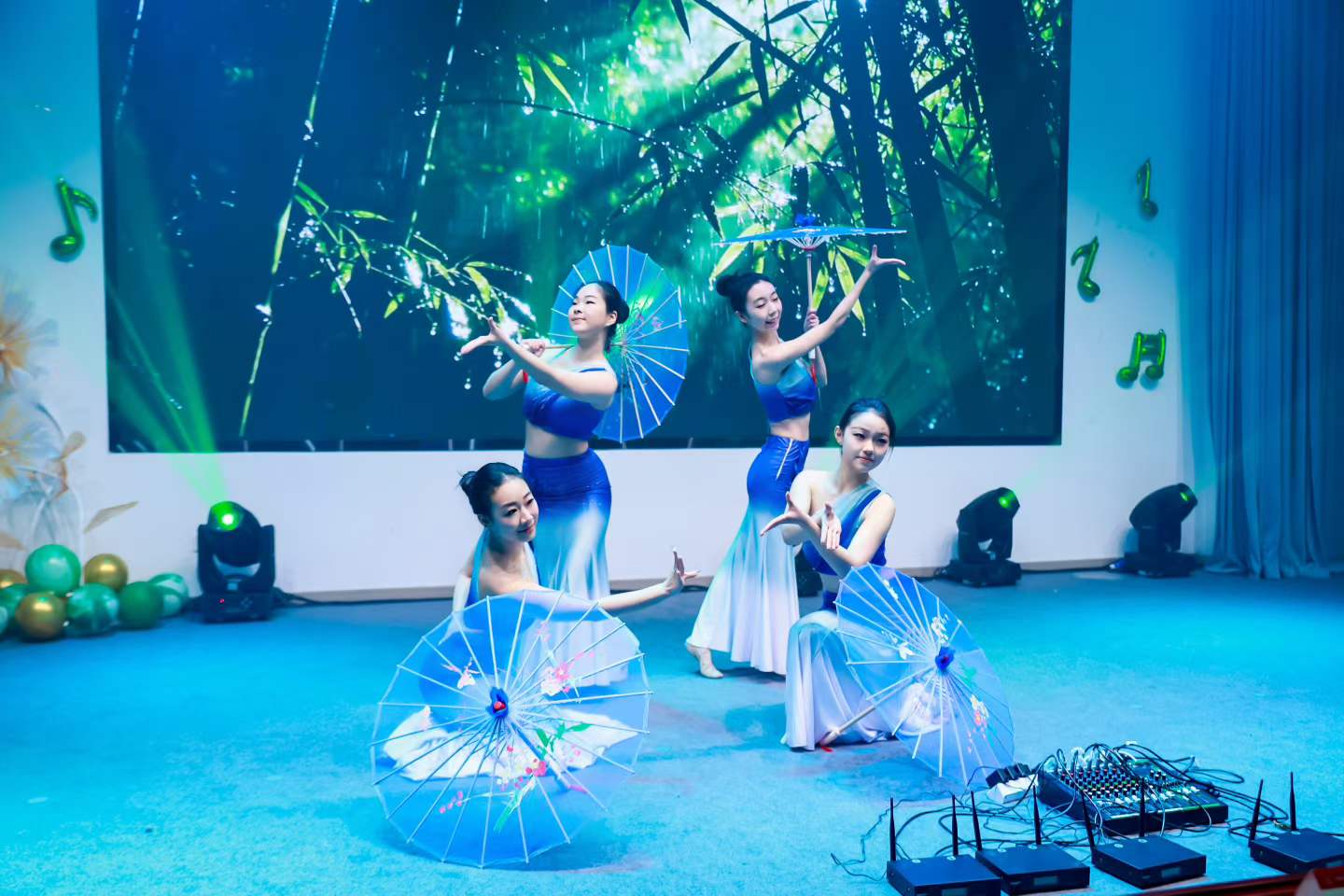 决赛舞台上,学生社团也带来了精彩助力表演,为大赛增添青春活力。校舞蹈队带来舞蹈表演《竹林掠影》,用优美的舞姿展现别样的诗情画意。S.O.S寂静人声乐团带来合唱《回到拉萨》,以纯人声和声的独特形式,展现了我校青年的艺术风采。高建博演唱高难度歌曲《来自天堂的魔鬼》,将现场氛围推向高潮,也为参赛教师送上了最真挚的鼓励。