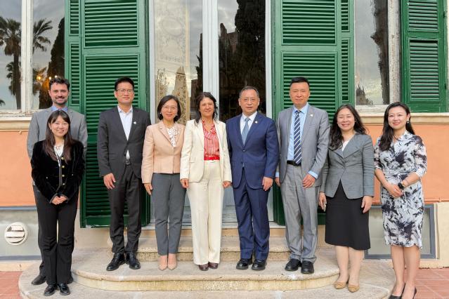 在罗马国际统一私法协会总部,秘书长Ignacio Tirado教授、副秘书长Anna Veneziano教授、首席法律官兼亚洲跨国法中心(ATLC)黄美玲教授、高级法律官兼ATLC联合主任William Brydie-Watson先生、青年专业官员Qianqian Liu女士及法律官员Wei Wang女士会见代表团一行。