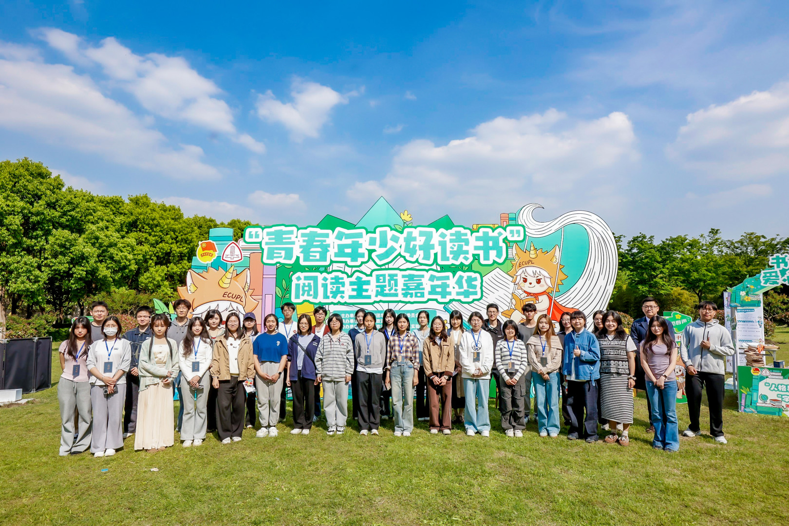 伴着《全民阅读促进条例》深入施行,为响应团中央“青春年少好读书”阅读行动暨“青春领读人”计划号召,推动“书香校园”建设,4月24日,在全国首个全民阅读活动周到来之际,我校“青春年少好读书”阅读主题嘉年华在松江校区ECUPL大草坪开展。活动以“阅读+文化+互动+实践”为特色,设置五大主题板块、十余项特色活动,在书香雅韵中共享阅读之美、文化之韵。