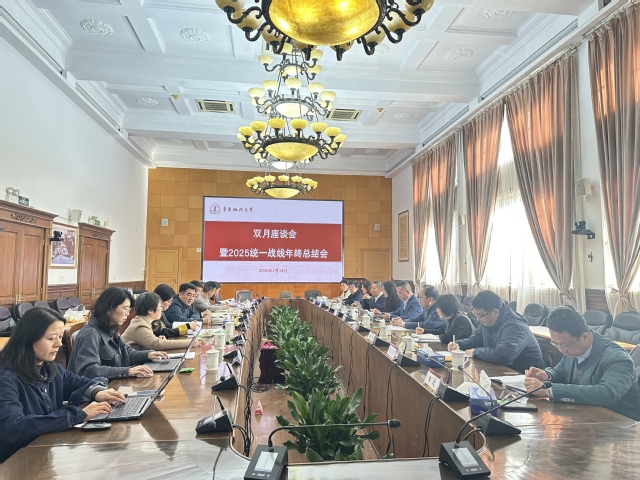 1月14日中午,华东政法大学双月座谈会暨2025年度统一战线年终总结会在长宁校区交谊楼圆桌会议室举行。校党...